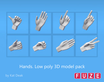 You may use these assets in your own commercial, private and educational projects. You may modify as required. No credit is due but is always appreciated. For example "3D Hand models created by FUZE Technologies Ltd" is very kind.